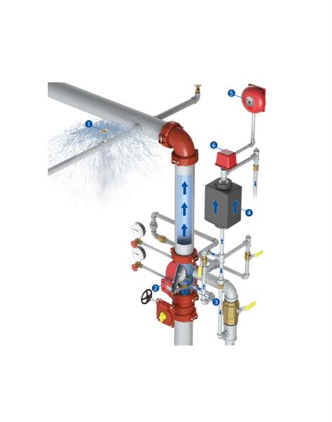 Islak Borulu Sprinkler Sistemi, ısıtılan hacimler ve suyun +4°C ‘nin altına düşüp donma ihtimali olmali olmayan ihtiyaçlar için dizayn edilmiştir. Alarm çek vana veya su akış dedektörü mekanik ve elektronik alarm vermesi maksadıyla kullanılırlar.